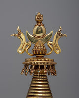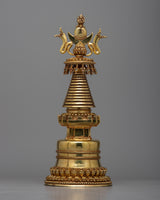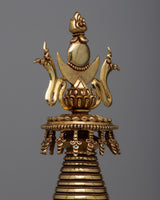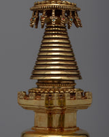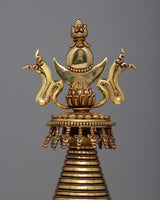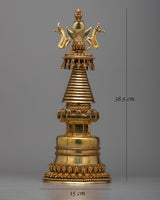 This stupa is adorned with a stunning layer of 24K Gold Plating , which reflects its celestial brilliance and enduring wisdom—the transcendent beauty of Buddhist heritage. Reaching a height of 38.5 cm, it attracts respect and attention and invites practitioners to set out on a path of enlightenment and spiritual discovery.