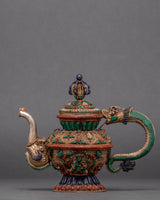 Handcrafted Tibetan Tea Pot Set | Beautiful Buddhist Tea Pot Charm for Home Decor | Genuine Himalayan Nepalese Craft | Religious Gift
