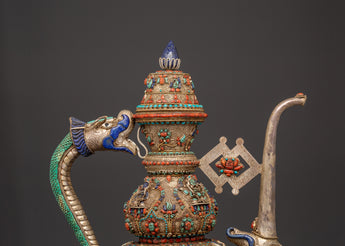 Handcrafted Tibetan Tea Pot with Dragon Handle | Himalayan Silver Tibetan Ritual Teapot