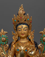 The carvings on each Bodhisattva's flowing robes, the life-like features on their faces, and the complex patterns on their lotus seat are an example of Nepalese Craftsmanship. The hand-carved gemstones give an extra depth of beauty and spiritual importance, improving the visual attractiveness of the statues. The tranquil presence of these Bodhisattvas make this set an excellent addition to any environment, serving as a continual reminder of their lessons on compassion, wisdom, and spiritual development. This set is ideal for personal altars, meditation rooms, or as a thoughtful gift, adding both visual beauty and profound spiritual importance to any setting.