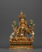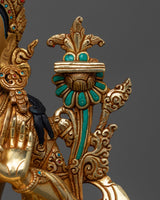 The Traditional Bodhisattva Set Statues, stands at a height of 12.4 inches (31.5 cm) with a base width of 9.1 inches (23 cm), making it a focal centerpiece for any spiritual or decorative setting. Crafted with meticulous attention to detail, this statue set features a copper body adorned with 24K gold gilding, enhancing its radiant and sacred aura. The intricate gold and acrylic paintings further highlight its artistic craftsmanship.