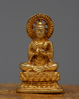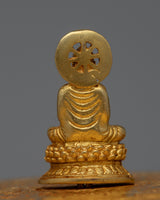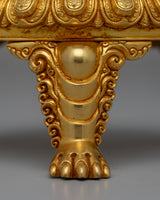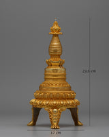 Crafted from copper and exquisitely adorned with electrogold plating, the Traditional Buddhist Stupa is a masterwork. This stupa, which is 23.5 cm tall and represents the essence of enlightenment and Buddhist teachings, has great spiritual significance in addition to being a beautiful decorative piece. A fascinating center point in any decor, the dazzling gold finish captures the light beautifully.