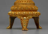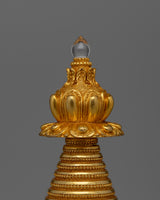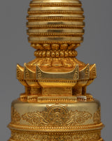This Stupa is handcrafted with unique details and plated with gold for Nourishment and Restraint in your life.