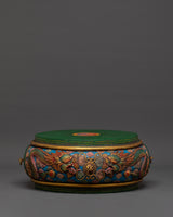 This Tibetan Drum, weighing 20.87 kg, is a remarkable artifact that can serve as both a spiritual tool and a decorative item in your home or temple. The craftsmanship and symbolism of the Himalayan drum are unparalleled, making it an ideal choice for collectors, spiritual seekers, and anyone wishing to personalize their environment with meaningful decor. Add this unique Tibetan spiritual drum to your collection and feel the strength of ancient Tibetan rituals right at home.