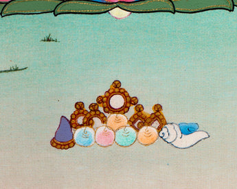 As requested for consecrations/blessings, we can take thangka to Monasteries/Rinpoches from nearby Boudha Stupa. We kindly ask you to offer $50 for the monasteries for blessings/consecration services.