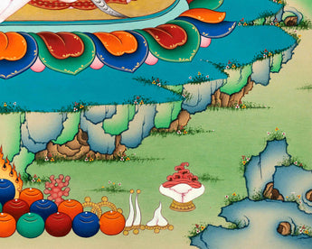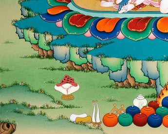 As requested for consecrations/blessings, we can take thangka print to Monasteries/Rinpoches from nearby Boudha Stupa. We kindly ask you to offer $50 for the monasteries for blessings/consecration service.