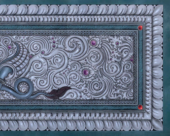 Introducing the captivating Cheppu Nepal, a remarkable paubha print that transports you to the enchanting realm of Nepalese art and culture. This exquisite masterpiece showcases intricate details and vibrant colors, capturing the essence of Nepal's rich heritage. The Cheppu, symbolizing a sacred umbrella, takes center stage, representing protection and auspiciousness. Adorned with delicate patterns and adorned with spiritual motifs, it emanates a sense of divine grace and tranquility. With each brushstroke, this paubha print invites you to embark on a visual journey, immersing yourself in the beauty and spirituality of Nepal. Add a touch of sacred elegance to your home or spiritual space with the timeless allure of Cheppu Nepal.