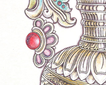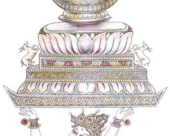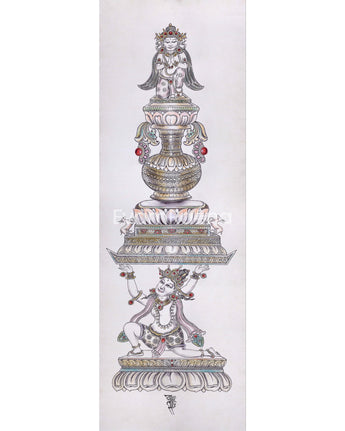 Discover the exquisite Thangka Print of Candle Holder, a captivating artwork that combines traditional aesthetics with a touch of elegance. This print showcases a beautifully illustrated depiction of a candle holder, meticulously crafted with intricate details and a captivating antique design. The Thangka artistry brings a sense of cultural richness and spiritual significance to your space. Display this print with pride and allow the serene imagery to create a soothing ambiance in your home. With its blend of artistry and functionality, the Thangka Print of Candle Holder is a remarkable addition to your decor, inviting a sense of tranquility and visual allure.