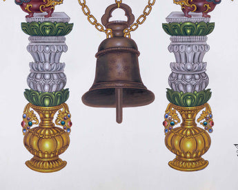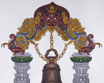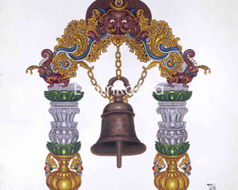 Traditional Bell Art Print For Room Decoration | Newari Paubha Print For Wall Hanging, Room Decor