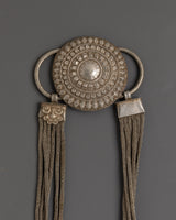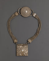 This necklace, made of silver and polished with an old wear, exudes a sense of nostalgia. The locket's design features intricate craftsmanship that enhances its vintage appeal, transforming it into a work of art rather than just jewelry. This necklace is ideal for anyone who values superb craftsmanship and the distinct look of antique jewelry. Its weight of 0.47kg provides a substantial feel, ensuring long-term quality and durability.