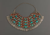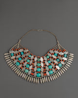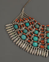 Tibetan White Metal Chunky Necklace with Coral and Turquoise
