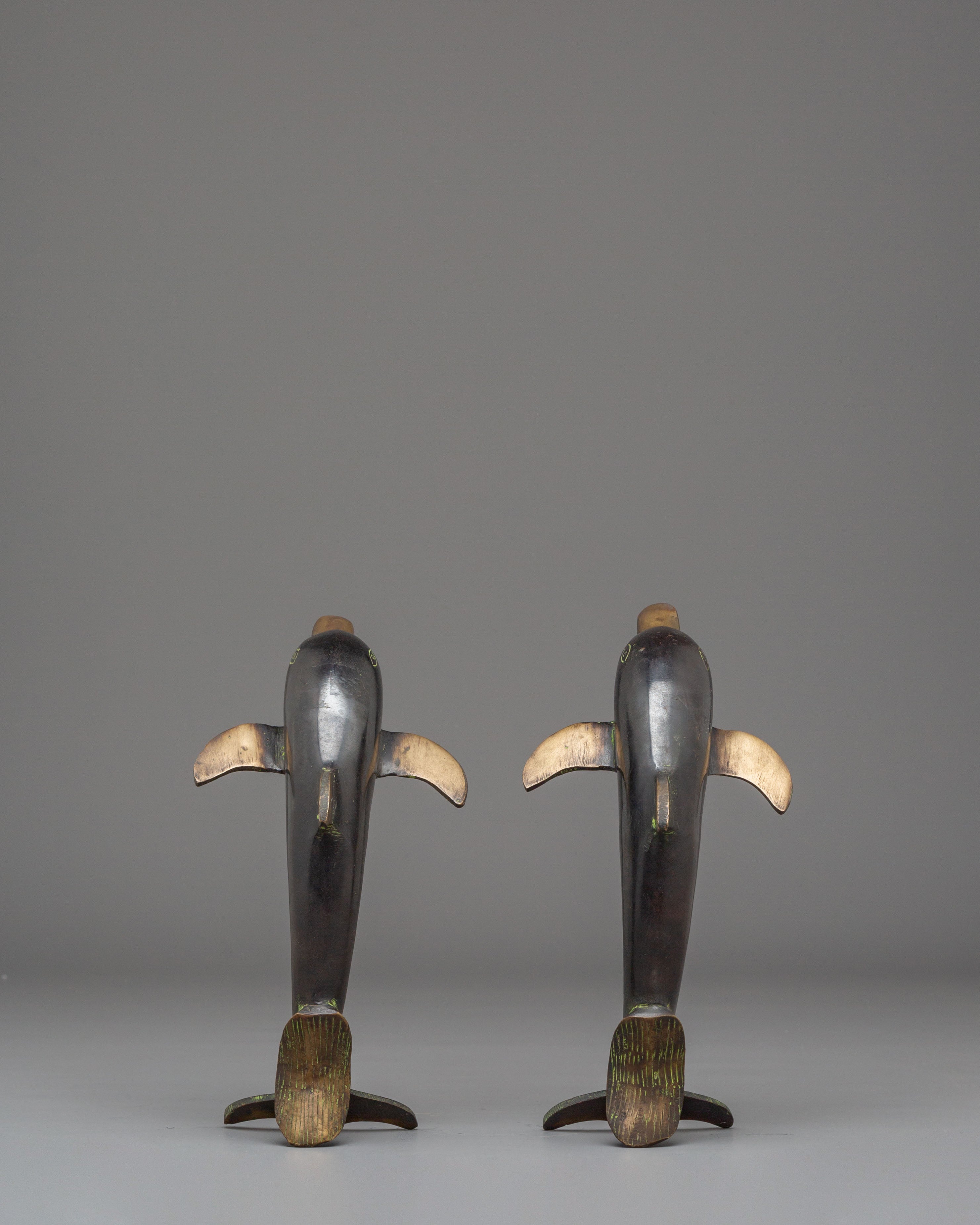 Handcrafted Dolphin Set | Spiritual Gold-Plated Copper Ocean Art