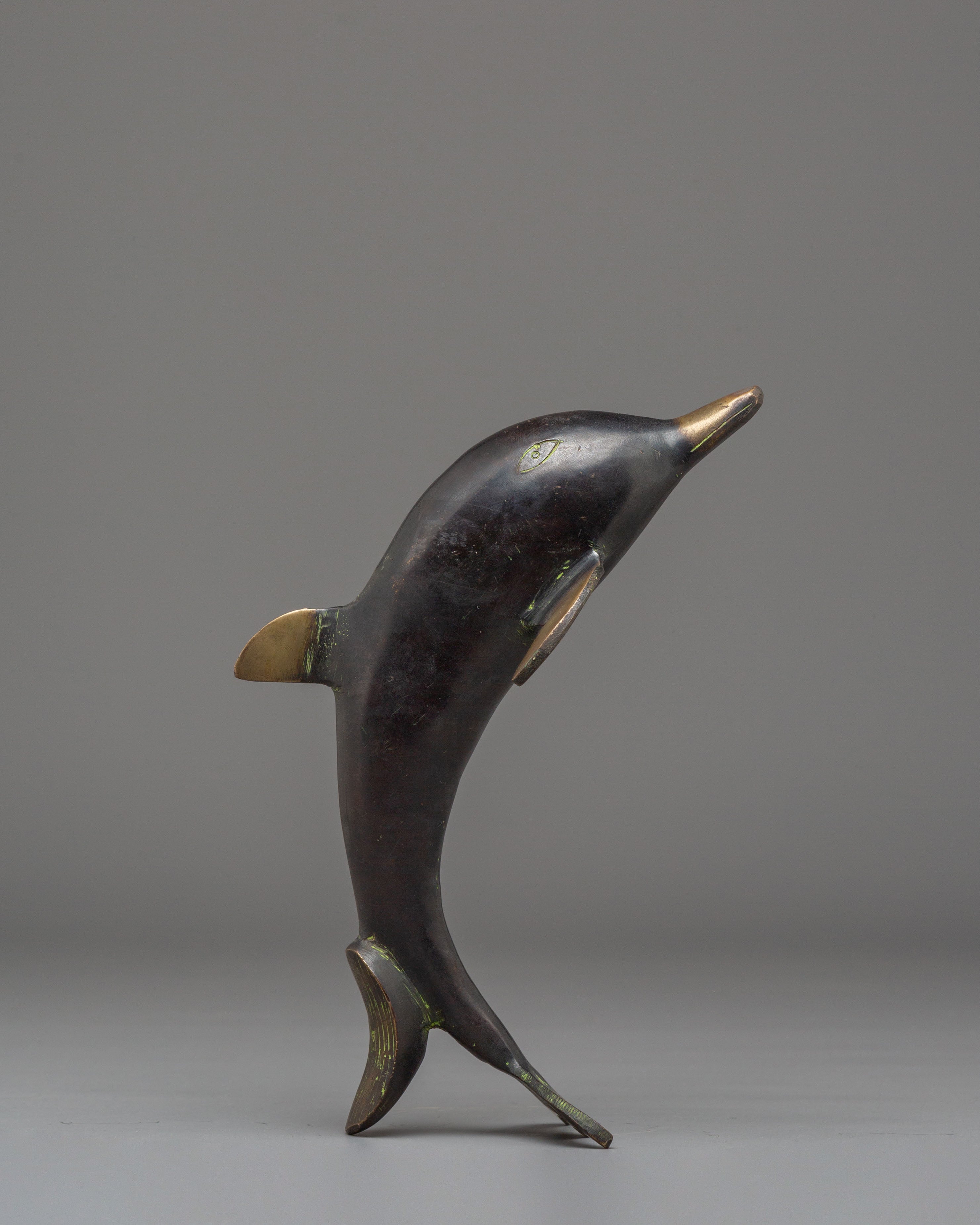 Elegant Dolphin Statue | Gold-Plated Copper Art for Meditation & Decor