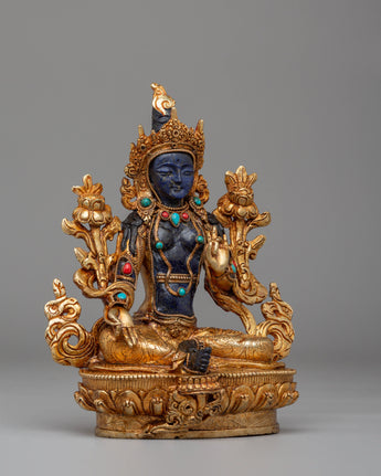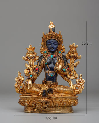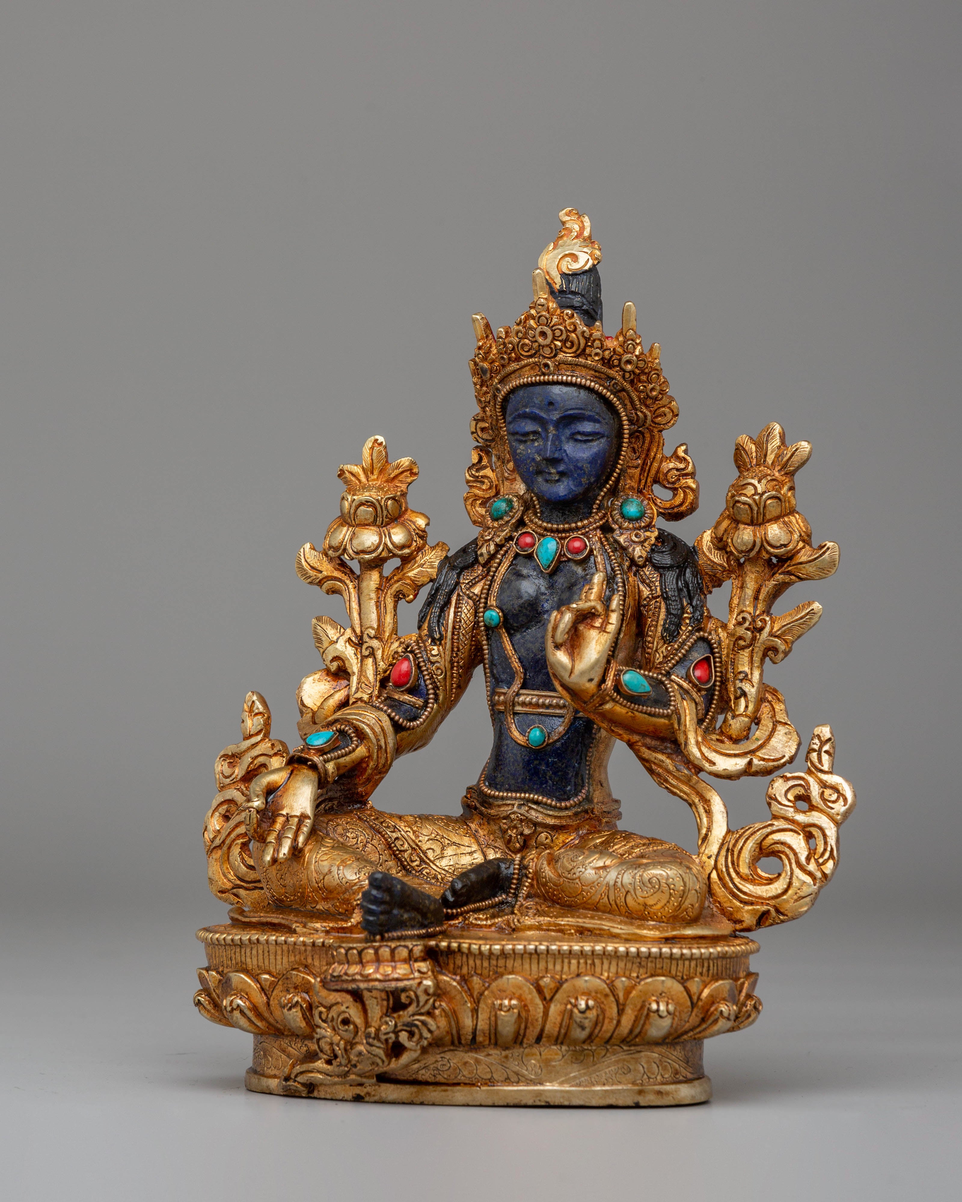 Green Tara is a revered female Buddha, known as the "Mother of Liberation," celebrated for her swift response to those who call upon her. She symbolizes the active aspect of compassion, alleviating fears, obstacles, and suffering with unparalleled speed. Devotion to Green Tara is believed to lead to protection, the fulfillment of wishes, and spiritual growth.