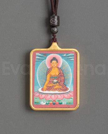 Exquisite Hand-Painted Shakyamuni Thangka Pendant | Sacred Pendant for Protection