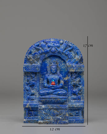The Handcrafted Buddhist Amitayus Statue is a beautiful and sacred representation of Amitayus, the Buddha of infinite life and longevity. Standing at 17cm tall and weighing 1.13kg, this statue is meticulously crafted using a combination of coral red stone, turquoise, and full-body lapis lazuli. These semi-precious stones are known for their healing and protective qualities, making this statue not only a decorative piece but also a powerful tool for meditation, spiritual growth, and prayer. Amitayus is believed to grant blessings of longevity, good health, and protection, making this statue a meaningful addition to any sacred space.