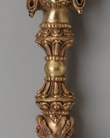 This Handcrafted Phurba Tibetan Art is a beautifully crafted ritual dagger used in spiritual practices. Measuring 28cm in height and 6cm in width, and weighing 0.85kg, it features intricate designs and symbolism. Made from copper and water gold, it serves as a powerful tool for meditation, rituals, and energy cleansing. Its detailed craftsmanship reflects the deep cultural significance of the Phurba in Tibetan Buddhism, making it both a functional and decorative piece for your spiritual journey.