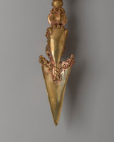 Ideal for meditation spaces, personal shrines, or as a unique spiritual gift, this gold-plated Phurba dagger serves as a potent reminder of inner strength and the ability to transcend negativity. Whether used in rituals or displayed as a sacred object, this ceremonial dagger brings both beauty and protection to your spiritual environment, helping you deepen your practice and connect with ancient wisdom.