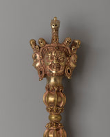 The design of this water gold Phurba dagger is rich in symbolism. The three-sided blade represents the triumph over ignorance, desire, and aversion, while the intricate carvings on the handle showcase sacred motifs such as the vajra, lotus petals, and protective animals, each carrying profound spiritual meaning. These symbols remind practitioners of the path to enlightenment and the importance of balance in their spiritual journey. The golden finish enhances its divine aura, reflecting the light and energy associated with higher consciousness.
