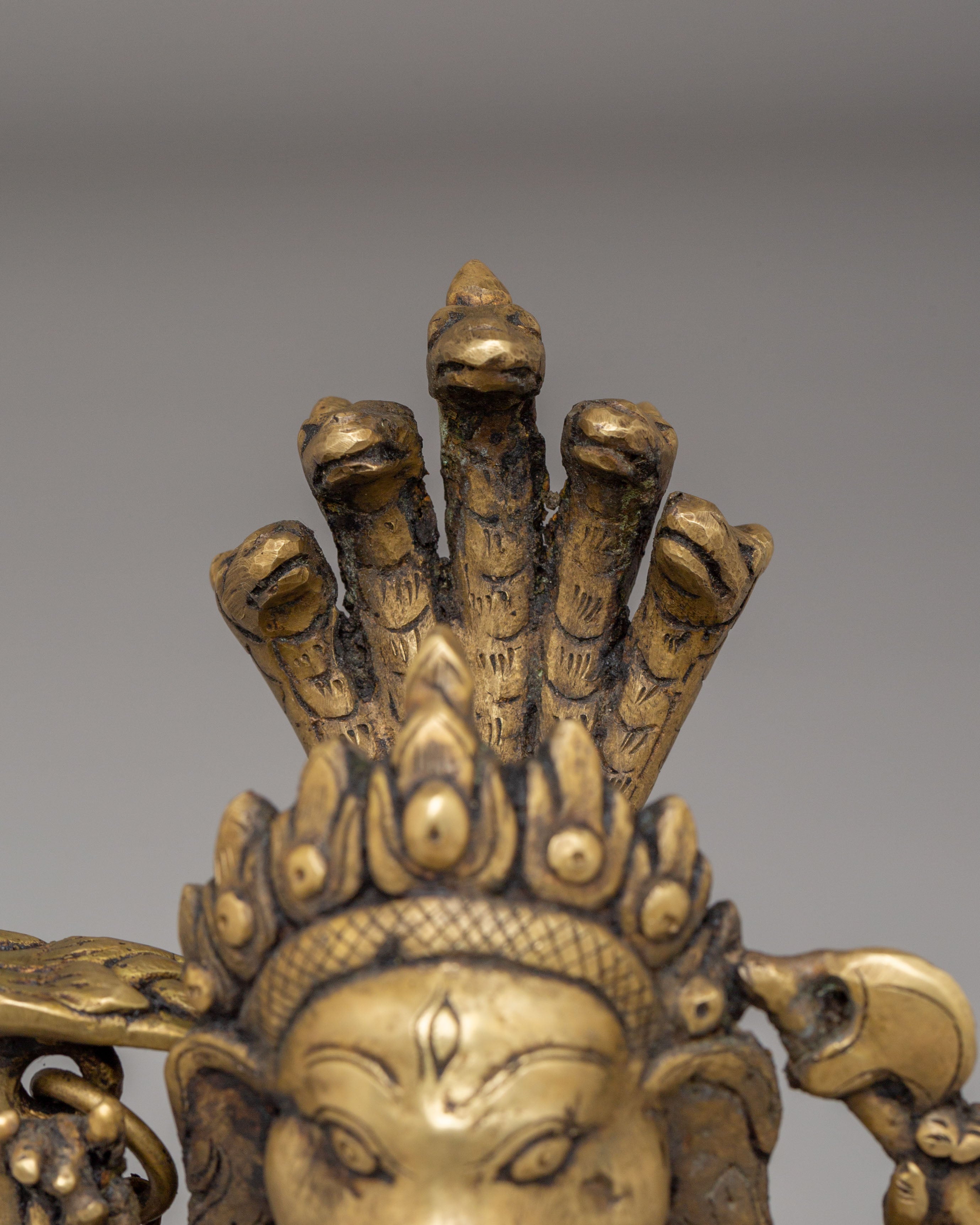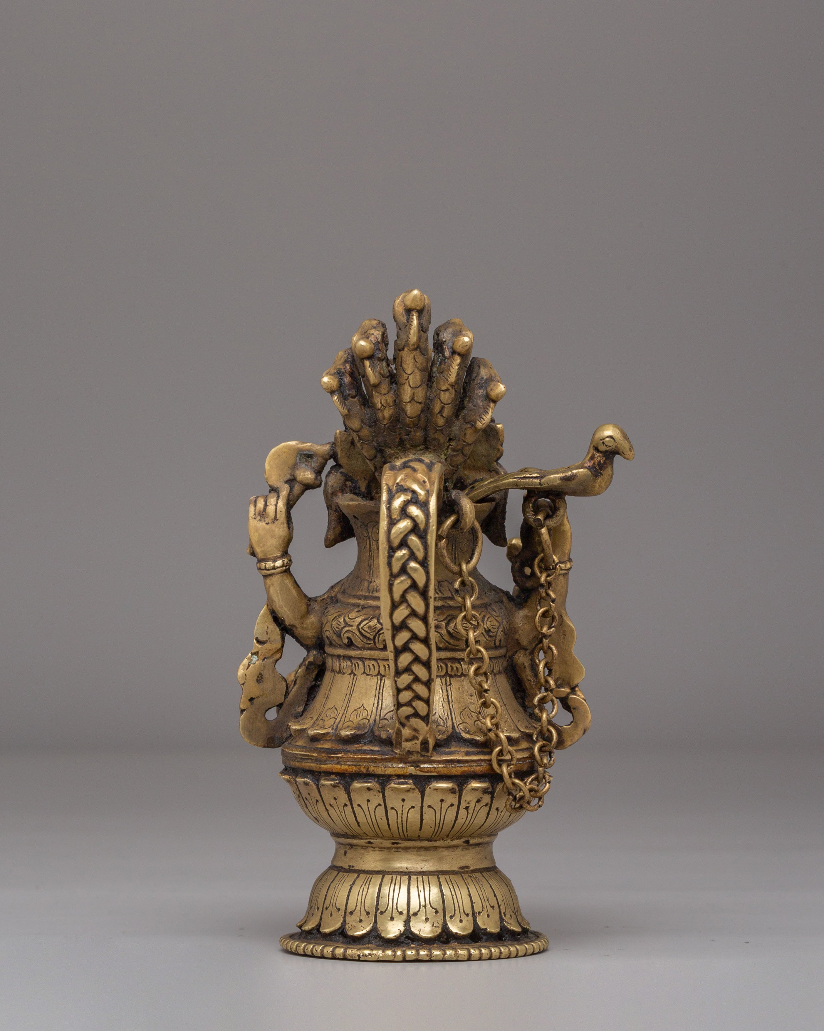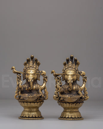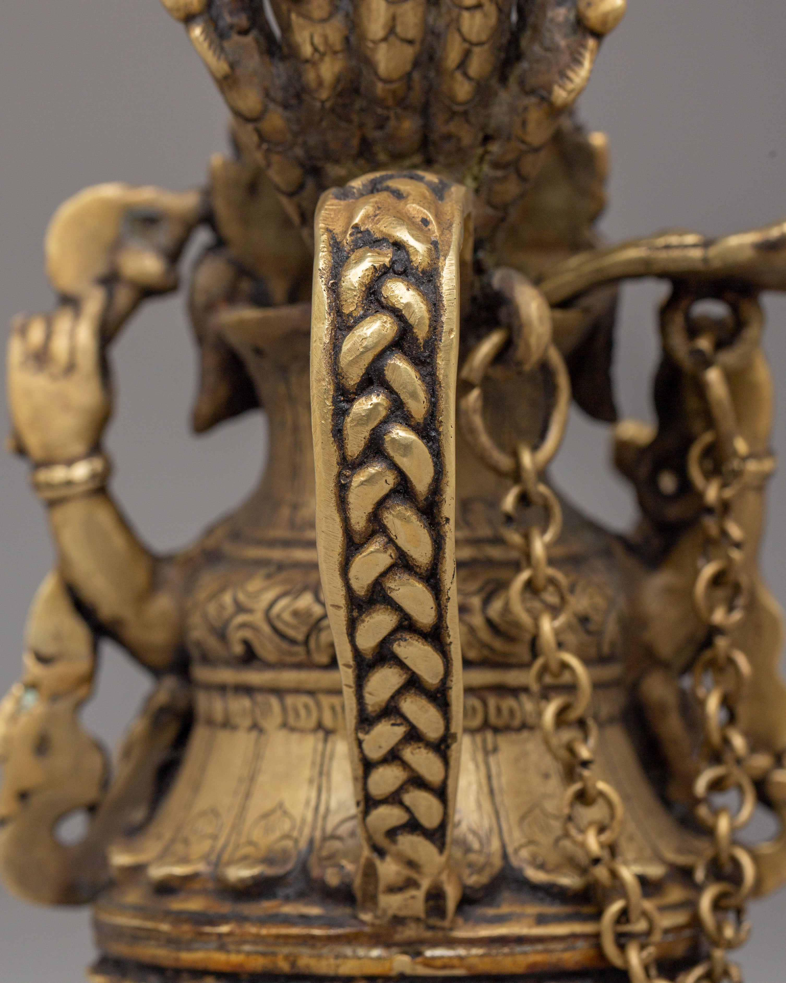 In terms of iconography, Lord Ganesha is positioned at the top of each Sukunda, symbolizing the remover of obstacles and the bringer of auspicious beginnings. Below, the lamp section represents illumination and spiritual clarity. The back of Ganesha’s head is adorned with Shesh Naag, the cosmic serpent, signifying protection and continuity, while Ganesha holds a parashu (axe) in his right hand, symbolizing the cutting away of ignorance and attachments. Together, these elements make the Sukunda not only a ritual object but a deeply symbolic presence in sacred practice.
