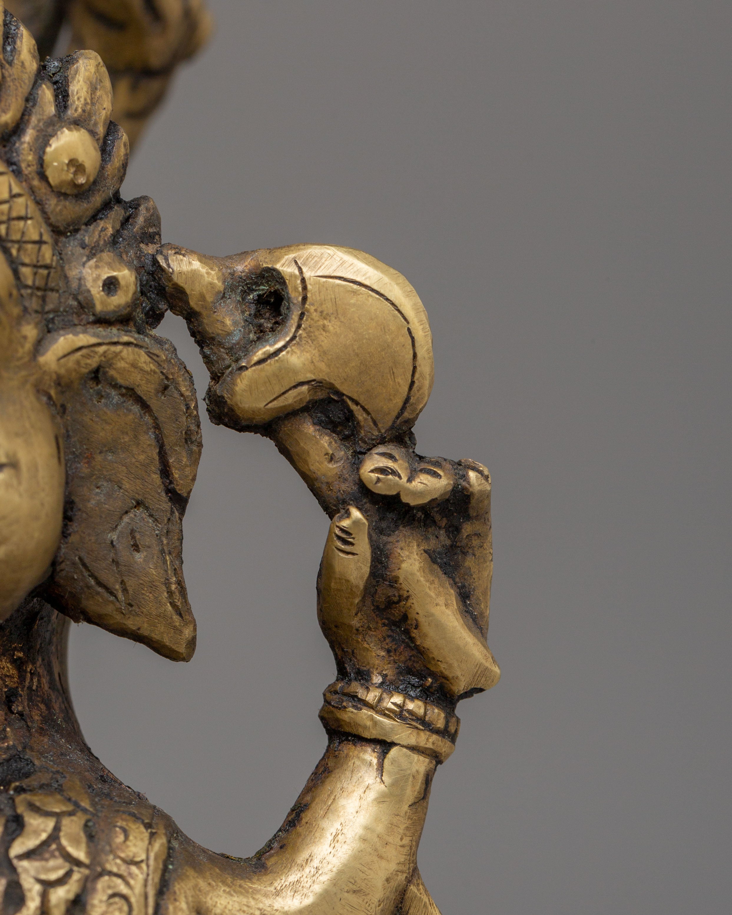 The popularity of Buddhist Ganesha extends beyond the spiritual. Ganesha is a Sanskrit name for the protector of prosperity and the remover of hindrances in Tibetan Buddhism. He is Vinayaka, a directional Protector. Avalokiteshvara persuades Ganesha to become a Dharma Protector in one of the Tantra stories.