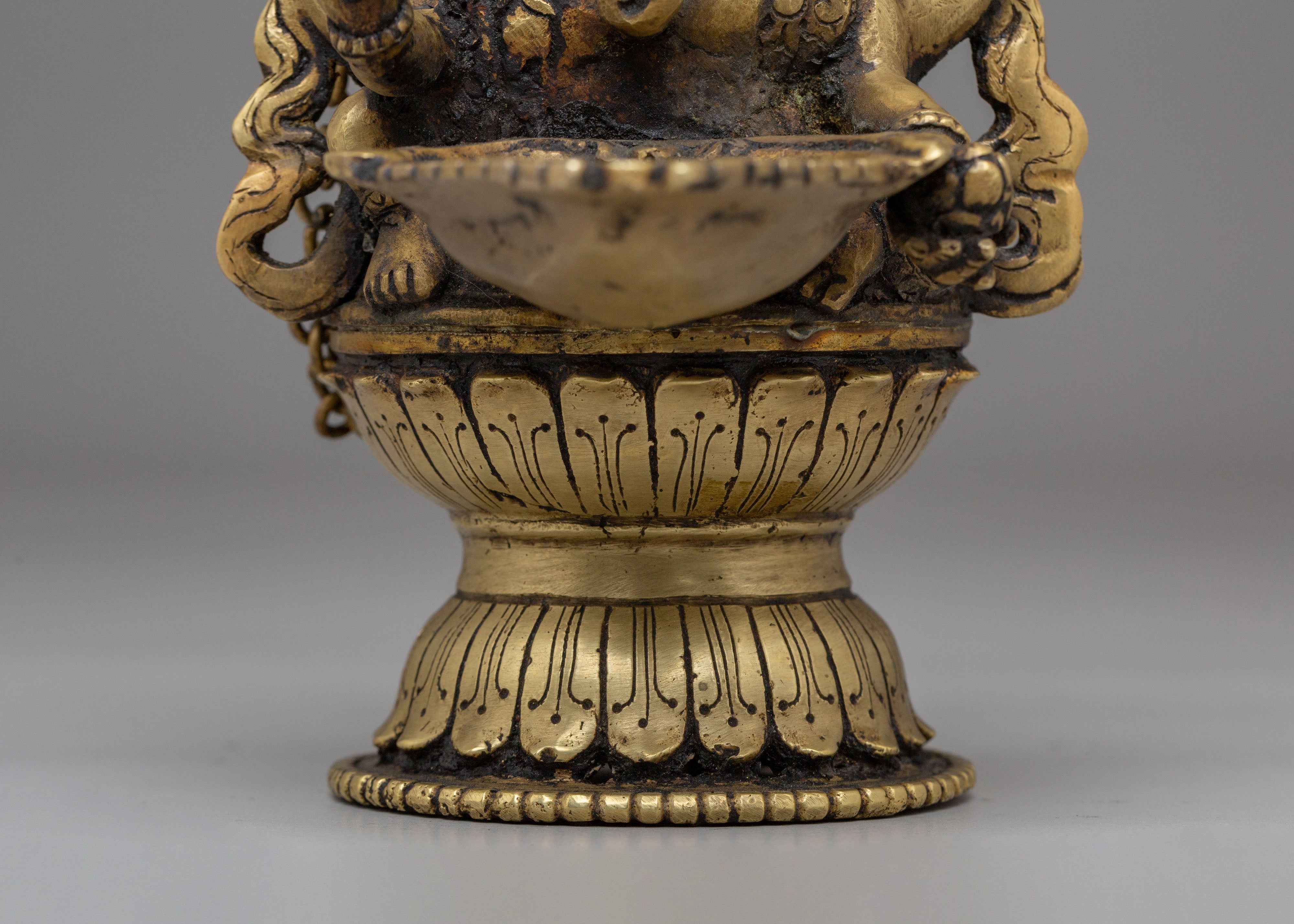 Handcrafted by skilled artisans, the Sukunda lamps reflect traditional Himalayan metalwork with carefully balanced proportions and refined detailing. Their form is both functional and decorative, designed to hold oil lamps securely while enhancing the spiritual atmosphere during daily prayers, festivals, and special rituals.