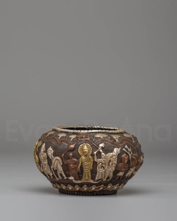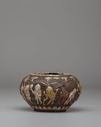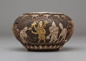 This Golpa art represents a deep connection to Tibetan culture and spirituality, with its meticulous design and symbolic meaning. The gold and silver plating provide a sense of divine beauty and protection, while the acrylic colors bring out intricate patterns and motifs that symbolize harmony and balance. The combination of copper and iron gives this artwork a timeless appeal, reflecting the balance between the material and spiritual worlds in Tibetan tradition.