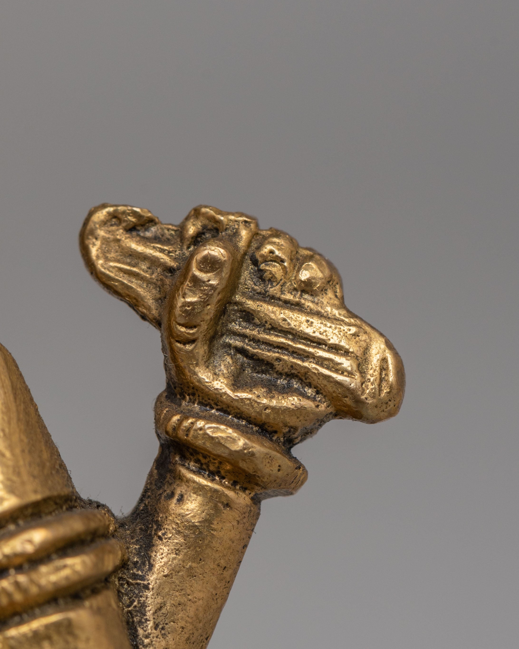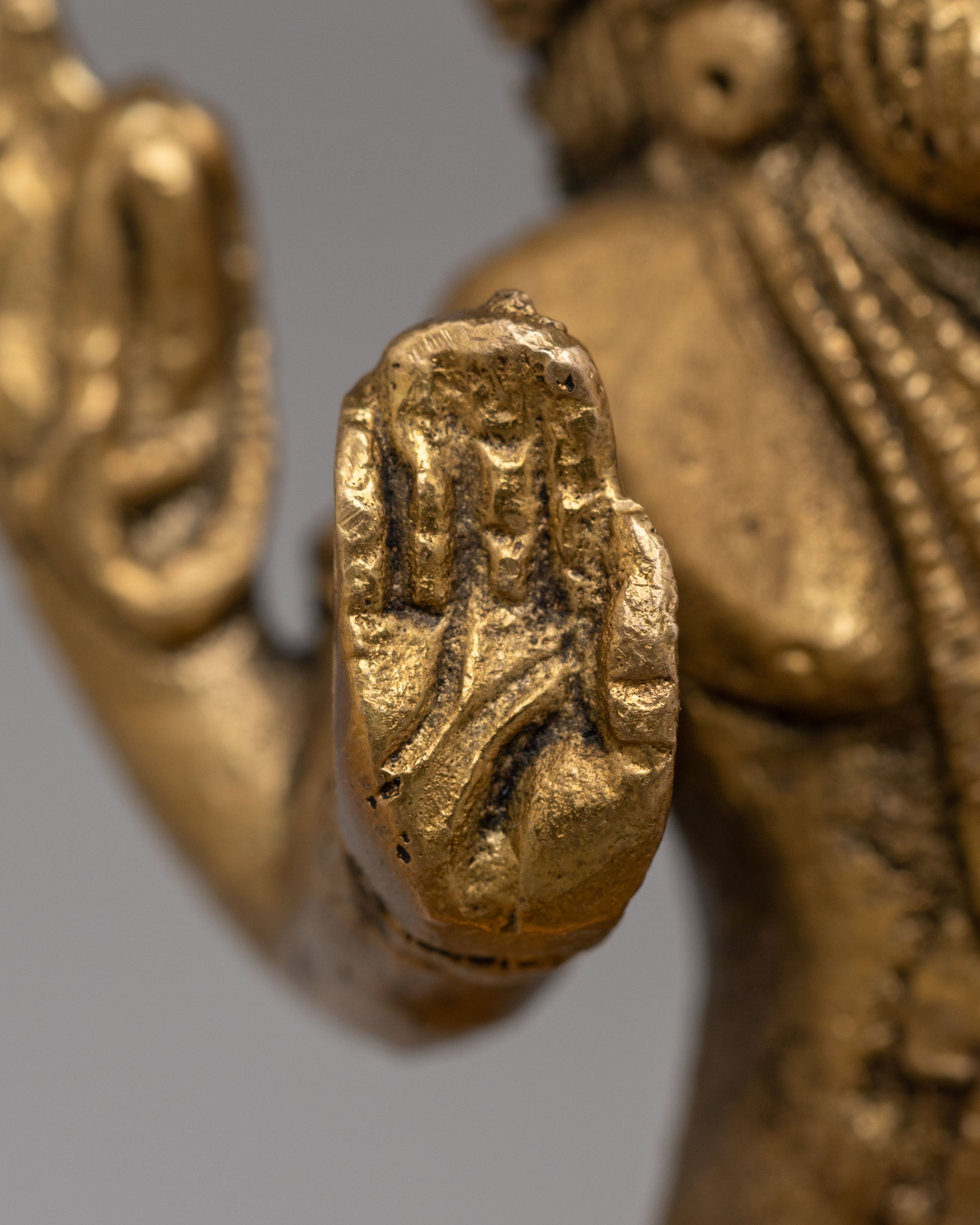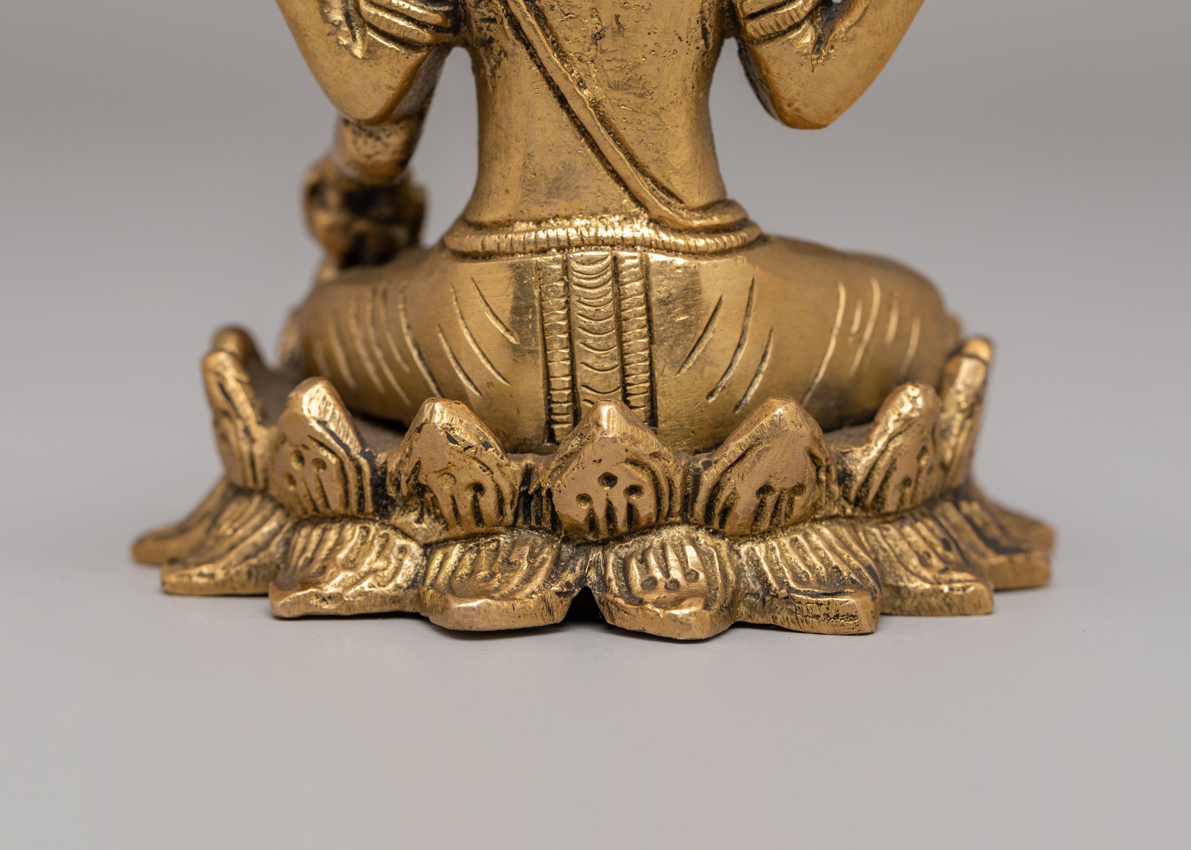 The design of this Brahma figurine is rich in symbolism. The lotus seat beneath Brahma represents divine beauty and the unfolding of creation, while the four faces of Brahma symbolize the four Vedas and his omniscience. The delicate craftsmanship and attention to detail, such as the divine aura and sacred posture, make this statue an exquisite reflection of Brahma’s significance as the creator of the universe.