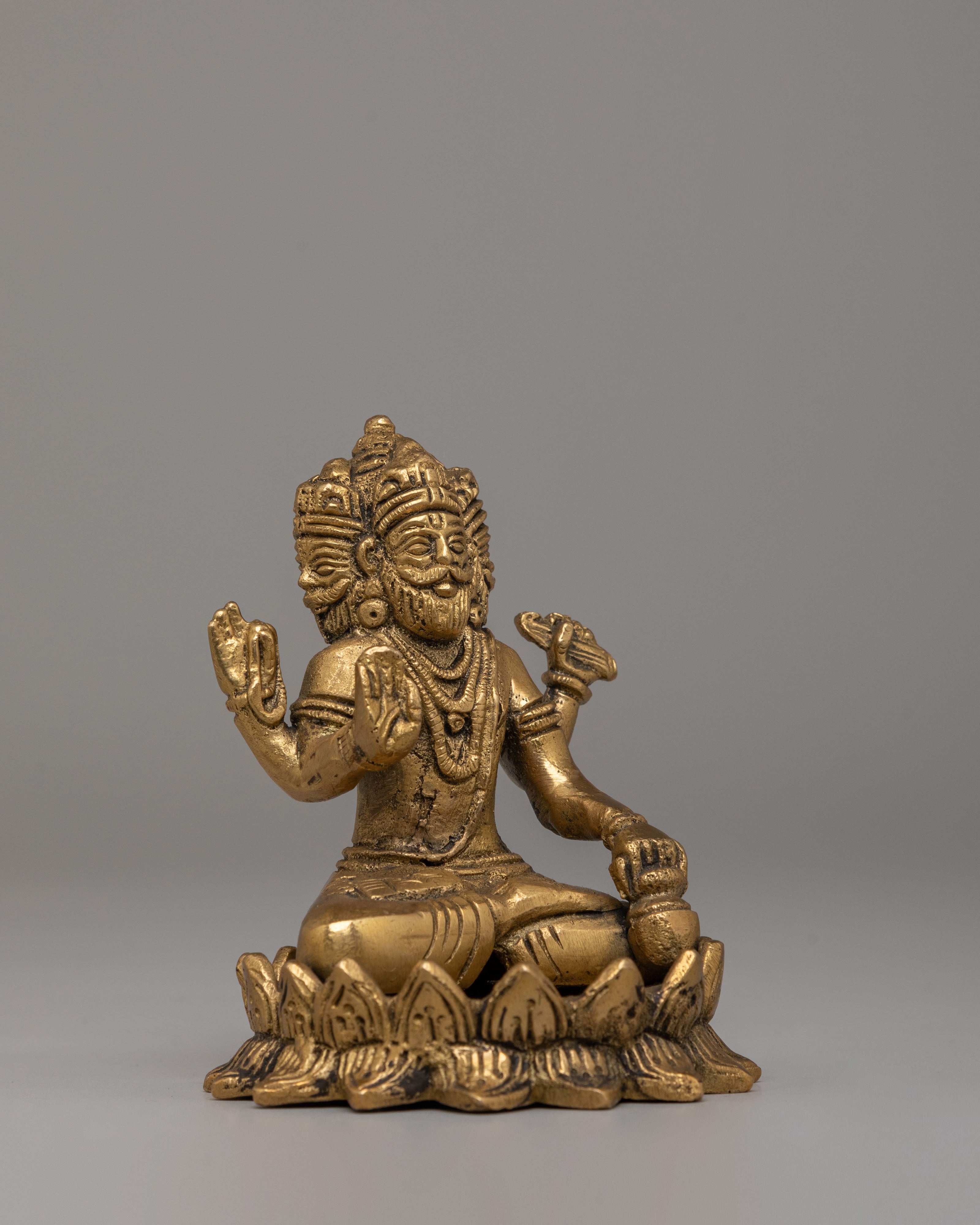 Handcrafted Brass Traditional Brahma Figurine | Hindu Deity Sculpture