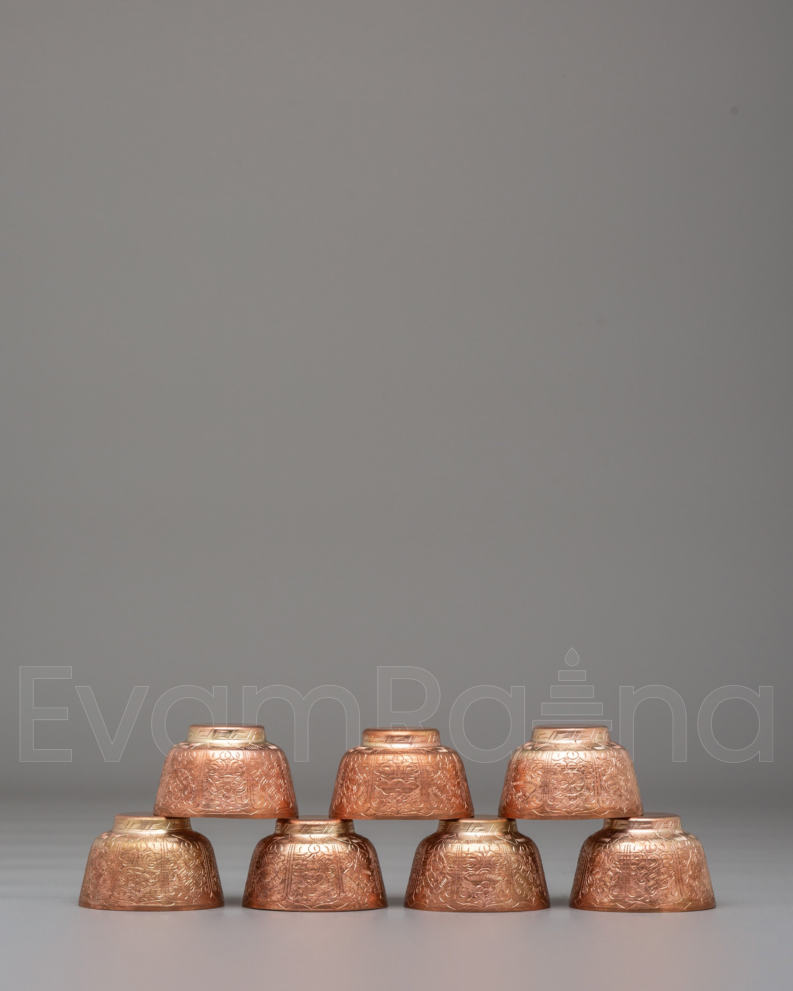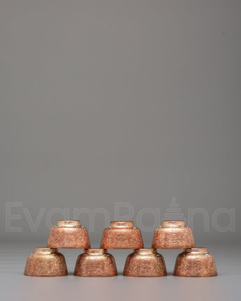 Traditional Tibetan Offering Bowl Set | Copper Bowls for Meditation & Spiritual Rituals