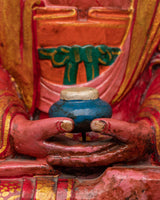 This hand-painted Amitabha statue, meticulously handcrafted by skilled artisans, embodies Tibetan Buddhist heritage. The Buddha, seated in deep concentration and holding a sacred bowl, radiates calmness and divine insight. This wooden sculpture is more than simply an artistic masterpiece; it is also a potent spiritual symbol that supporters believe will bring them to inner calm and enlightenment. Whether used for rituals, prayer, or house decor, this statue is a timeless reminder of spiritual enlightenment.