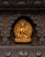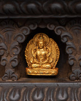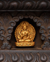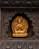 Bodhisattva Figures with Wooden Altar | Gold Plated Copper Statues for Spiritual Decor