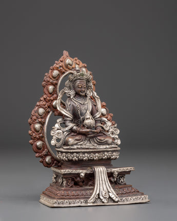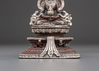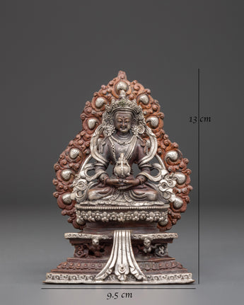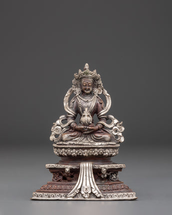 Buddhist Longevity Icon Amitayus Statue | Silver Plated Sculpture