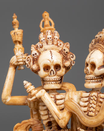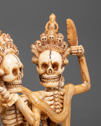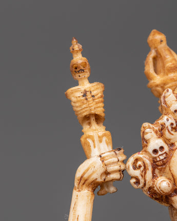 Traditional Chitipati Buddhist Protector Deity Bone Craving | Guardians of Impermanence