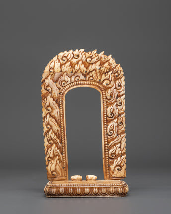 This guardian figure is often depicted dancing joyfully in skeletal form, reminding practitioners to detach from ego and embrace the cycle of life and death as part of the spiritual path. Each carving is carefully shaped to reflect traditional Himalayan artistry, making it a meaningful addition to home altars, meditation rooms, or Buddhist art collections. Crafted with care and intention from ethically sourced buffalo bone, this piece honors both sacred tradition and mindful sourcing, making it a powerful object of devotion and reflection.