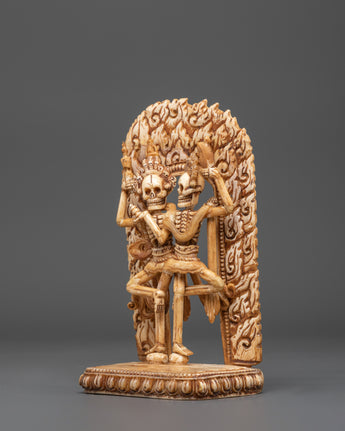 This Tibetan Chitipati statue embodies centuries of tradition, with every detail designed to capture the energy and symbolism of this strong guardian deity. Chitipati is revered in Tibetan culture and represents the cycle of life, death, and rebirth, acting as a reminder of spiritual progress. Handcrafted from responsibly sourced buffalo bone, this sculpture combines cultural importance with artistic mastery, making it a great spiritual gift, collector's item, or altar centerpiece.