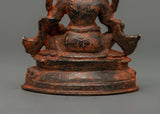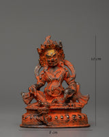 Dzambhala is shown seated, holding a mongoose in his left hand to represent the removal of material and spiritual impediments. In contrast, his right-hand rests in Granting Mudra with Citron Fruit. His crown, encrusted with magnificent gems, symbolizes the prosperity and plenty he bestows to his disciples. Dzambhala's strong yet sympathetic visage reminds practitioners of his protective nature and capacity to alleviate poverty by providing spiritual and practical gifts. This figurine will attract prosperity and positive energy into your life.
