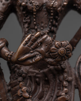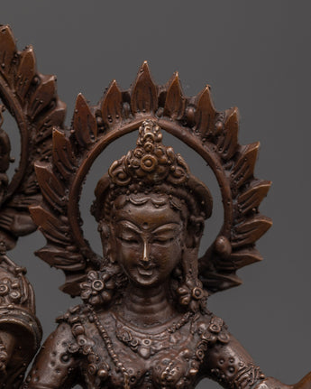 Bring the essence of heavenly love and undying devotion into your sacred area with this exquisite Krishna and Radha Brass Statue. This sculpture, which stands 20 cm tall and 13 cm broad, is constructed of rusted brass and has an old polish that adds to its traditional beauty. Radha and Krishna are represented in an elegant, compassionate stance that represents heavenly union and unconditional love, making them suitable for both personal devotion and spiritual décor.