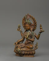 This intricate Lakshmi statue, expertly fashioned from oxidized copper, exemplifies traditional artistry with delicate engravings that capture the essence of Vedic culture and Hindu devotion. The oxidized finish adds to its elegance, making it a classic addition to temples, shrines, and religious home decor. Whether placed in a work environment for financial success, a home altar for blessings, or presented as a meaningful gift, this Hindu deity figurine is a powerful emblem of prosperity and heavenly favor.