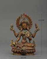 Laxmi statue is a 12.5cm oxidized copper sculpture representing the Hindu Goddess of Fortune and Abundance. Goddess Laxmi, known as the bestower of riches and good fortune, is frequently depicted sitting on a lotus flower, representing purity, wealth, and spiritual growth. This sacred idol is ideal for altar worship, puja ceremonies, meditation areas, or a thoughtful gift for loved ones seeking financial and spiritual stability.