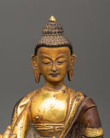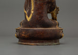 This Buddhist shrine statue, meticulously created by expert artisans, exudes divine grace and compassion. The rusted copper finish with gold detailing adds to the traditional appeal, making it an excellent altar centerpiece, meditation aid, or spiritual home decor. With this sacred Medicine Buddha sculpture, you may bring positive energy, deep healing, and enlightenment into your environment. It is ideal for temples, shrines, and personal meditation places.