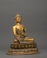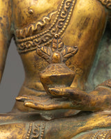 The statue's copper base and gold-plated finish, which have been meticulously crafted, give it a feeling of timelessness and sacred beauty. The Medicine Buddha sculpture encourages well-being, peace, and enlightenment, making it an ideal gift for anybody on a spiritual path or needing treatment. Whether displayed on an altar or in a meditation nook, this statue promotes calm, balance, and healing energy in any setting.