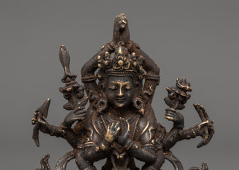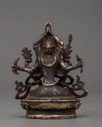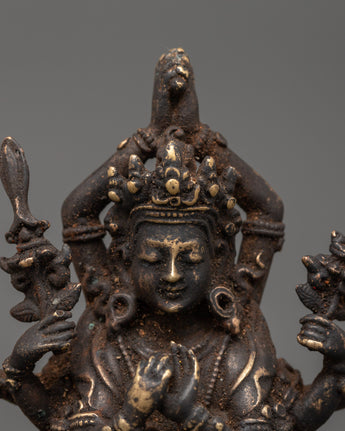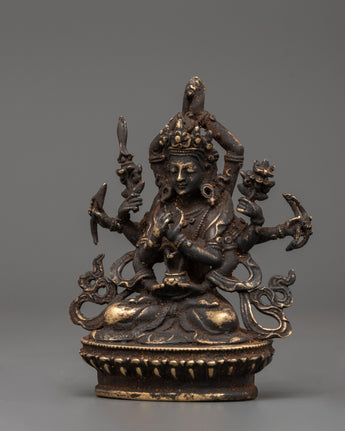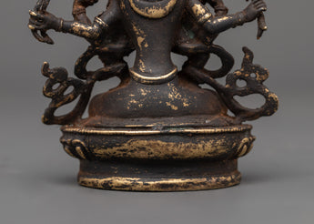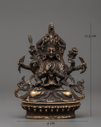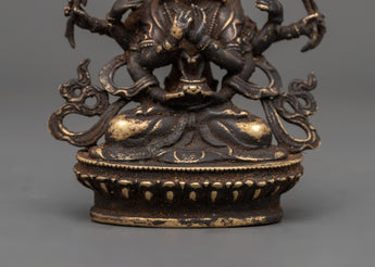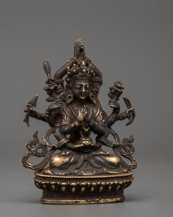 This handcrafted statue is made of high-quality copper with an antique finish and features detailed detailing that highlights his holy presence. The old patina heightens its historical and holy appeal, making it a timeless asset to any Buddhist or meditation space, with measurements of 11.5 cm in height and 9 cm in breadth and a solid weight of 0.34 kg. Whether for personal devotion or as a thoughtful gift, this handcrafted Namasangiti statue represents wisdom, clarity, and spiritual awakening.