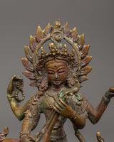 Saraswati statue is a 12cm oxidized copper sculpture dedicated to the Hindu goddess of learning, music, and the arts. Saraswati, the beloved Goddess of Learning and Creativity, is frequently shown holding a veena (a musical instrument) and sacred books representing divine knowledge and artistic expression. This statue is perfect for meditation areas, home altars, study rooms, or as a thoughtful gift for students, artists, and spiritual searchers.