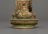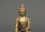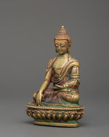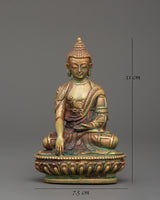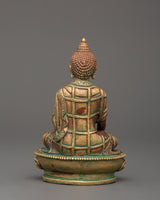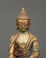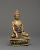 This Shakyamuni Buddha Buddhist Decor Statue is a symbol of serenity and wisdom. This beautiful statue stands 11 cm tall and 7.5 cm wide, making it the ideal size for your home or altar decor. This statue, made of oxidized copper with gold plating, exudes spiritual beauty. Shakyamuni Buddha is honored in Buddhism for his enlightenment and teachings of peace, compassion, and wisdom. This statue depicts his calm pose, bringing serenity and peacefulness to any area. Its gold-plated craftsmanship elevate it beyond mere decoration to serve as a spiritual reminder of attention and compassion.