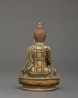 This sacred statue, created with great craftsmanship, features precise engraving and traditional iconography, making it an ideal addition to meditation rooms, personal altars, and Buddhist shrines. The gold-plated accents emphasize its celestial beauty, while the oxidized copper finish provides an antique feel, representing spiritual depth and devotion. This Shakyamuni Buddha statue is a strong reminder of inner calm, balance, and enlightenment, making it ideal for Dharma practice, meditation, or a memorable spiritual gift.