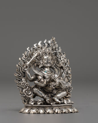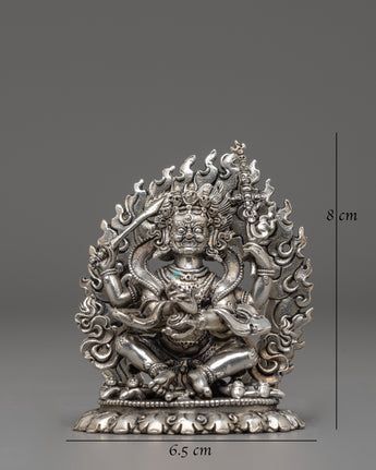 Silver Plated Mahakala Statue | Tibetan Wrathful God Figurine