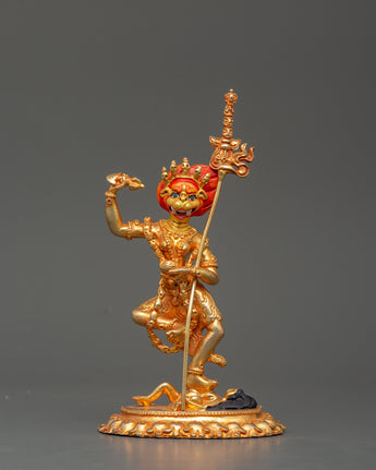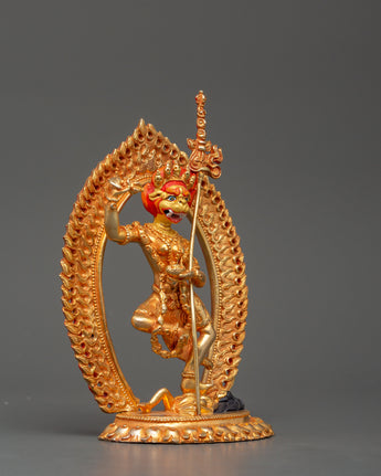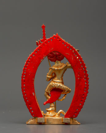 In Tibetan Buddhism, Simha Mukha, also known as the Lion-Headed Protector, is a guardian god renowned for its capacity to ward off evil and spiritual obstacles. The lion head is a symbol of courage, power, and the ferocious energy required to vanquish evil forces and impediments. It is also thought that Simha Mukha protects practitioners on their way to enlightenment, guaranteeing their spiritual health. The protection, empowerment, and spiritual strength accessible to individuals who seek direction and solace in the divine are all symbolized by this statue.