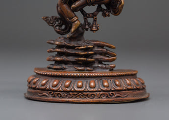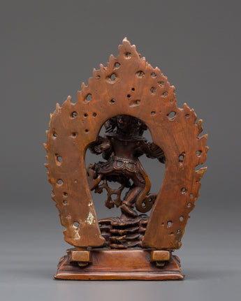 The Tantric Protector Hevajra Statue is meticulously handcrafted and showcases the deity's dynamic posture, expressive features, and symbolic characteristics. The oxidized copper finish gives depth and a mystical air, highlighting the delicate intricacies of Hevajra's numerous limbs, ornaments, and ceremonial tools. Each piece of the sculpture has deep spiritual meaning, signifying the energy that shields practitioners from harmful influences and aids in spiritual transformation. This sculpture combines artistry and spirituality, creating a gorgeous and meaningful sacred object. This Tantric Protector Hevajra Statue is ideal for individuals looking to deepen their spiritual practice or meditation experience. Placing this oxidized copper figure on your altar or holy location symbolizes protection, clarity, and spiritual empowerment.