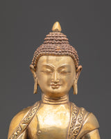 Traditional Shakyamuni Buddha Figurine | Gold Plated Copper Meditation Statue